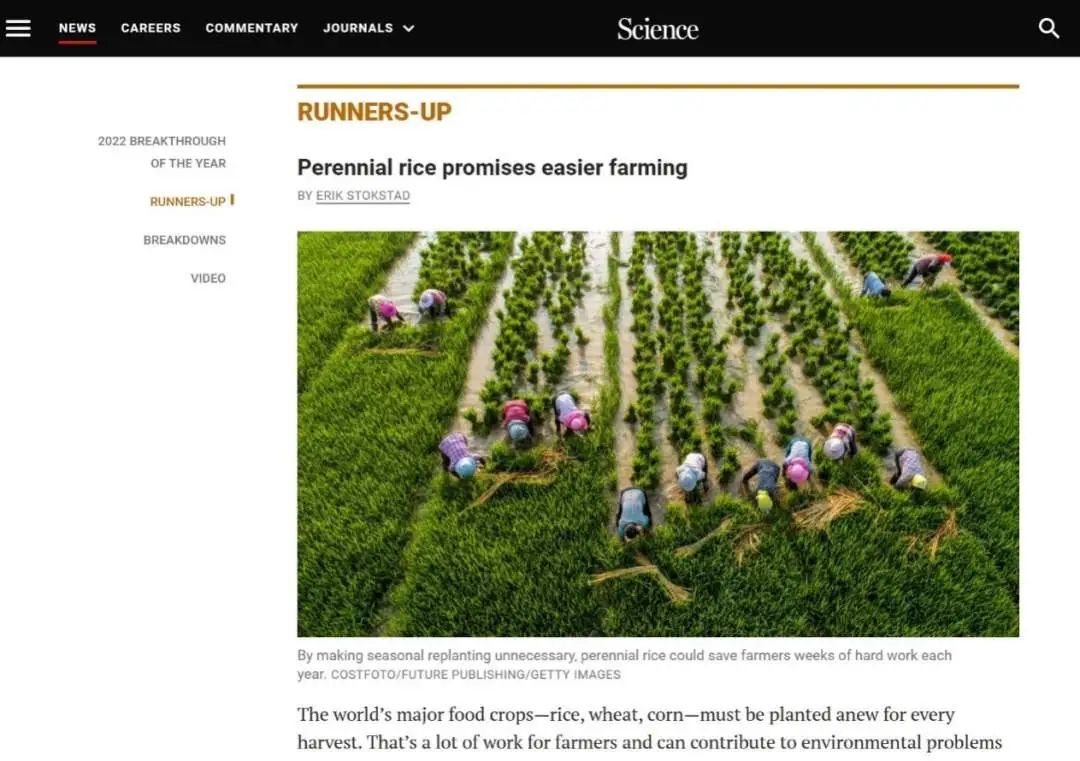 最终,他们成功培育出多年生稻品种,实现水稻“一次栽种,多次收割”。平均每亩节约6—10个人工,节约了劳动力,降低了劳动强度,节约生产成本45%—50%,实现了多年生粮食作物育种,“从0到1”的突破。团队成果入选国际学术期刊Science 2022年度“十大科学突破”。