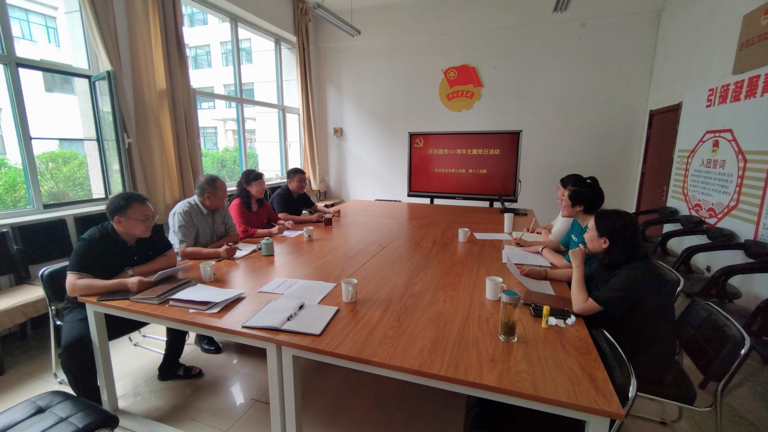 为庆祝中国共产党成立101周年,引导广大党员坚定入党初心,牢记党员身份,履行党员义务,6月28日,机关党总支第七支部与第十八支部联合举行党日活动。活动中,首先由第七党支部书记杨志鹏做了《新时代群团工作的新思考》专题党课辅导,从党的群团工作会议精神、新时代群团工作的特点和工作要求等方面,对如何做好新时代群团工作进行了分享交流。